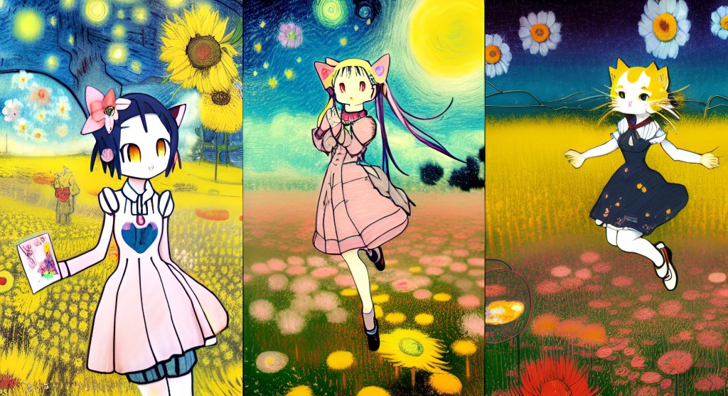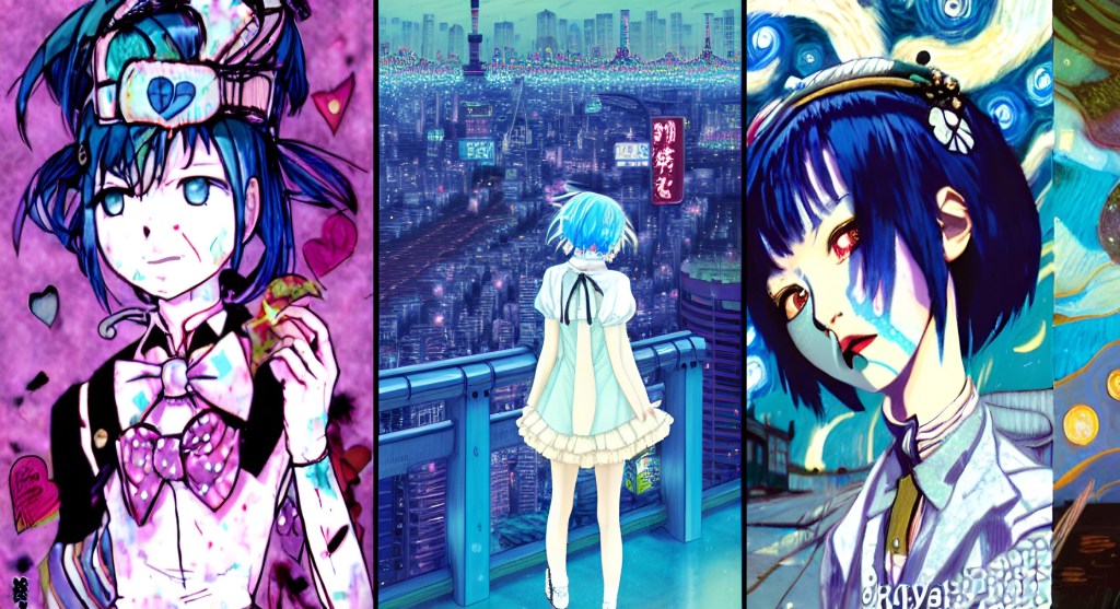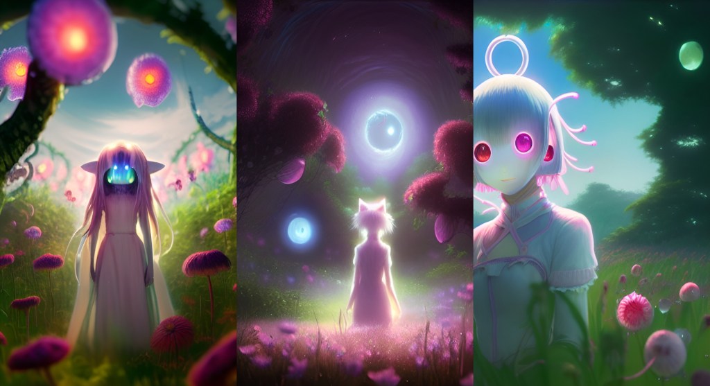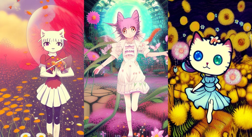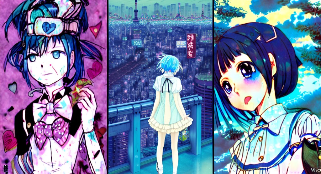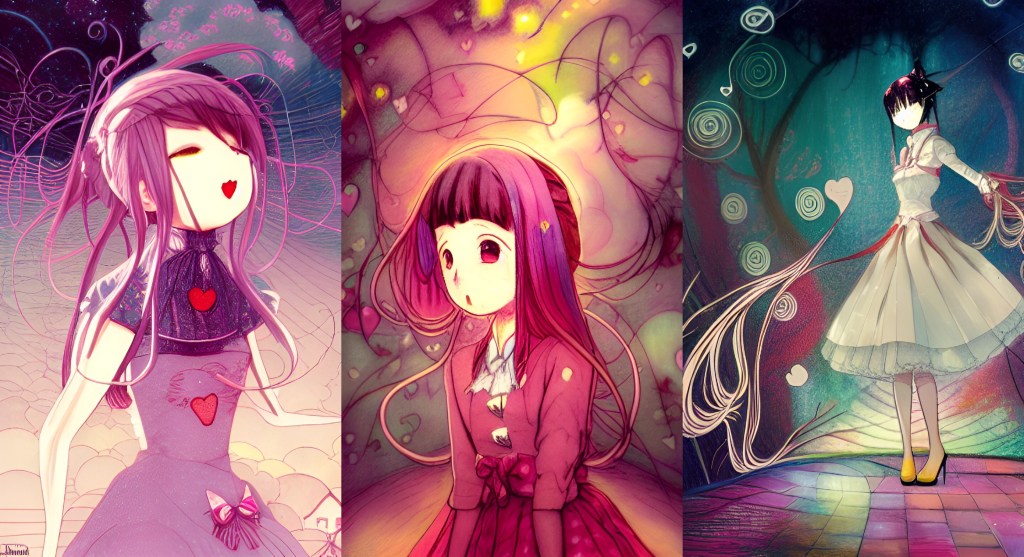 I used AI-generated art to try to get Madoka Magica inspired pieces for this post. Some of it is cool. Some of it is disturbing. I hope you enjoy these botched imaginations of artificial artists. For those who haven’t seen the show, the art here isn’t very accurate, but it sort of resembles the art in witch’s labyrinths. There is a gallery of Madoka Magica inspired generated arts at the end of the page.
