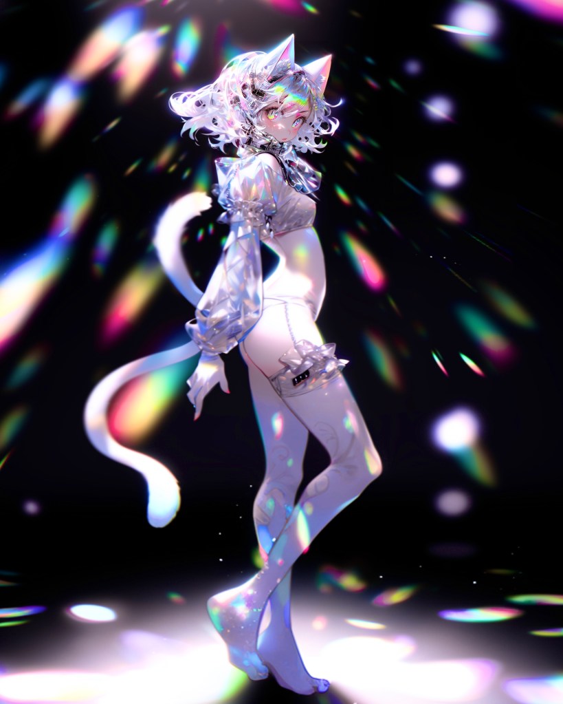 Two extremely cat-ish things walked up to us. This time, their heads were entirely cat. The calico one interrupted me, “Hello, meow!”