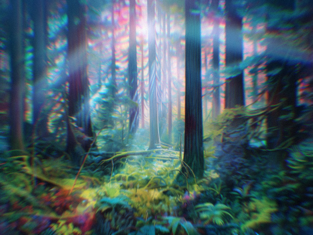 For the first while of our hike, we all silently walked through this strange forest. The aesthetics and the harmony of the bird songs kept us quiet. Soothed our souls. Residual phantasms glittered the paths we walked upon, bubbling up and disintegrating before they fully formed. Mist coated the ether, giving the forest an underwater appearance.