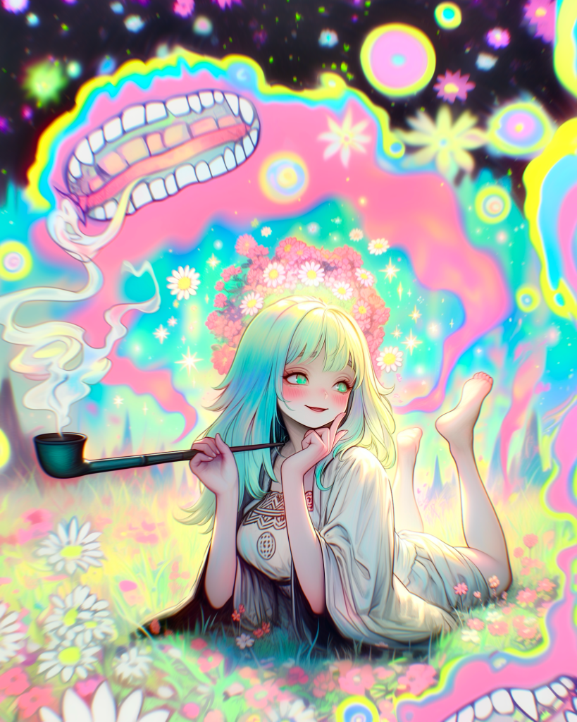 She finally answered my question, “We are in the temple, of course, silly. Our minds are connected. This realm is only imaginary. But don’t worry, it is also real, just not material. Both of us are really here. Now… we can discuss without any intrusion from the outside. Think of it like our own little telepathy bubble.” She inhaled the Zaza and then passed the pipe to me. Her exhale had a great expression of relief and even bliss.