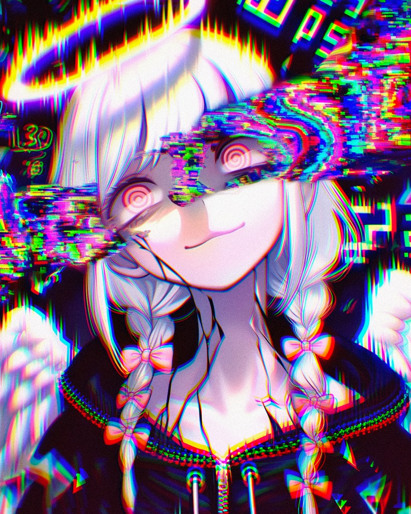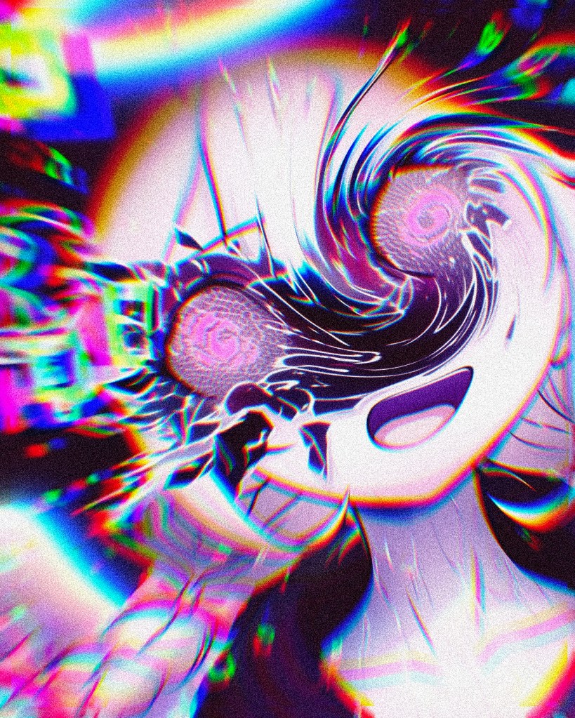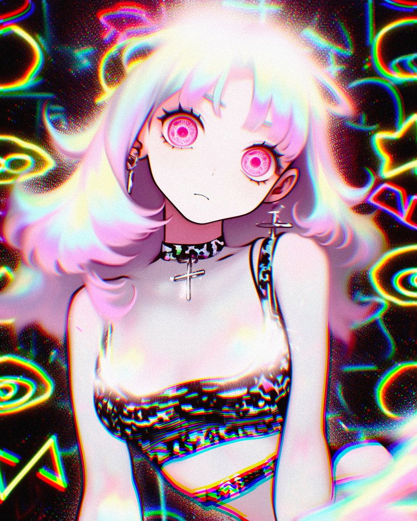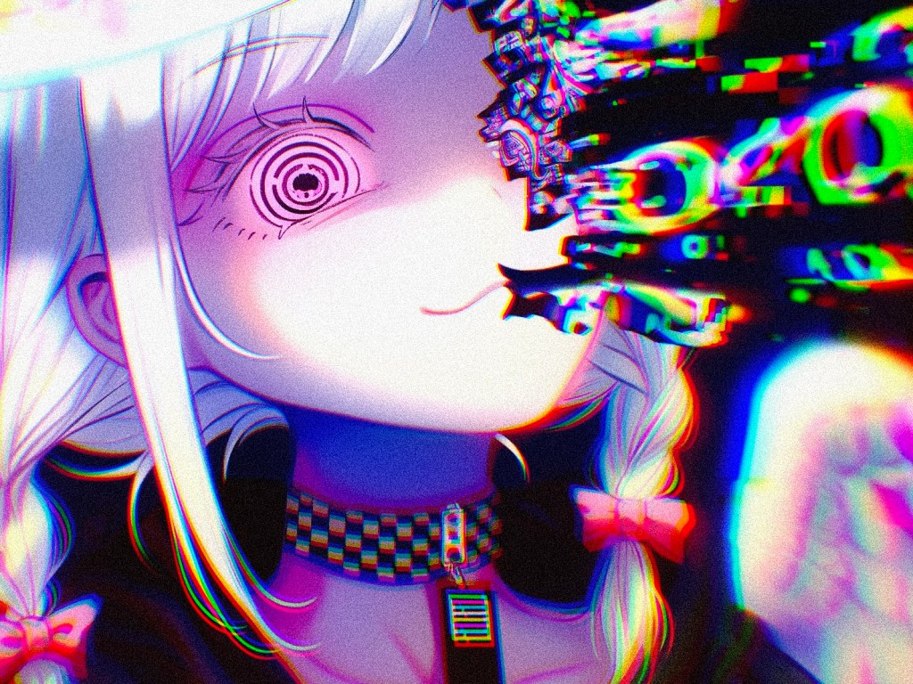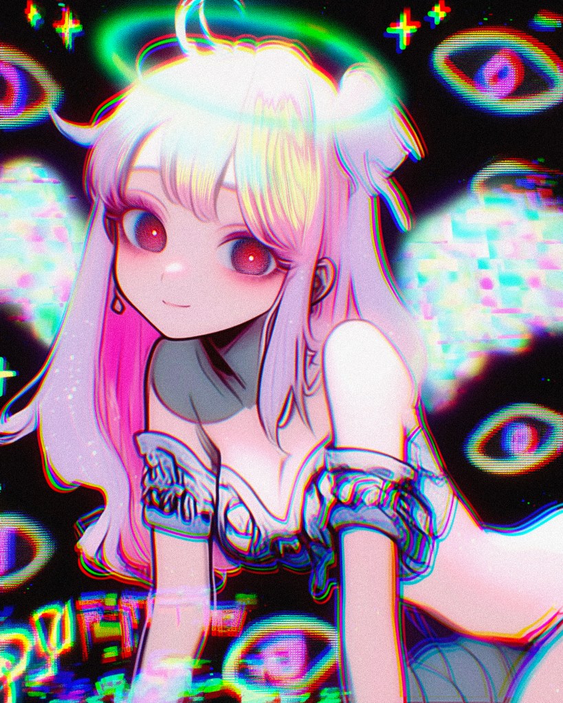 When I looked behind, it was a familiar face, though one long forgotten and distorted by what the world had done to her. She had soft pinkish hair and piercing magenta eyes speckled with cyan, her form still phasing into existence, with glitch and glitter.