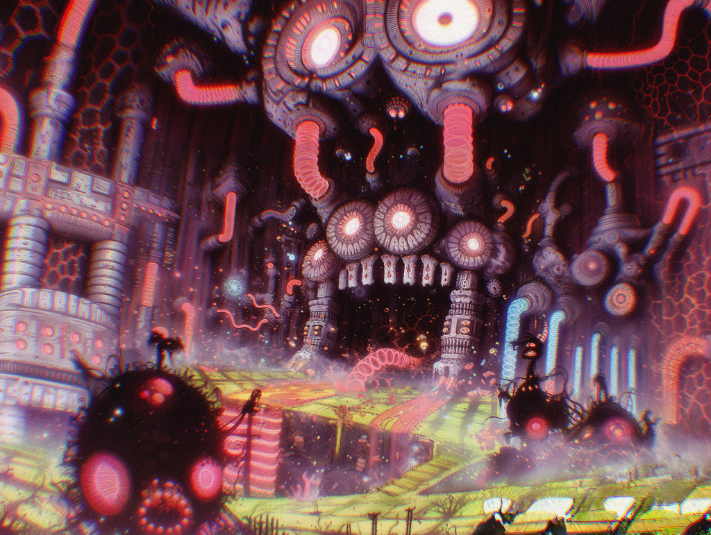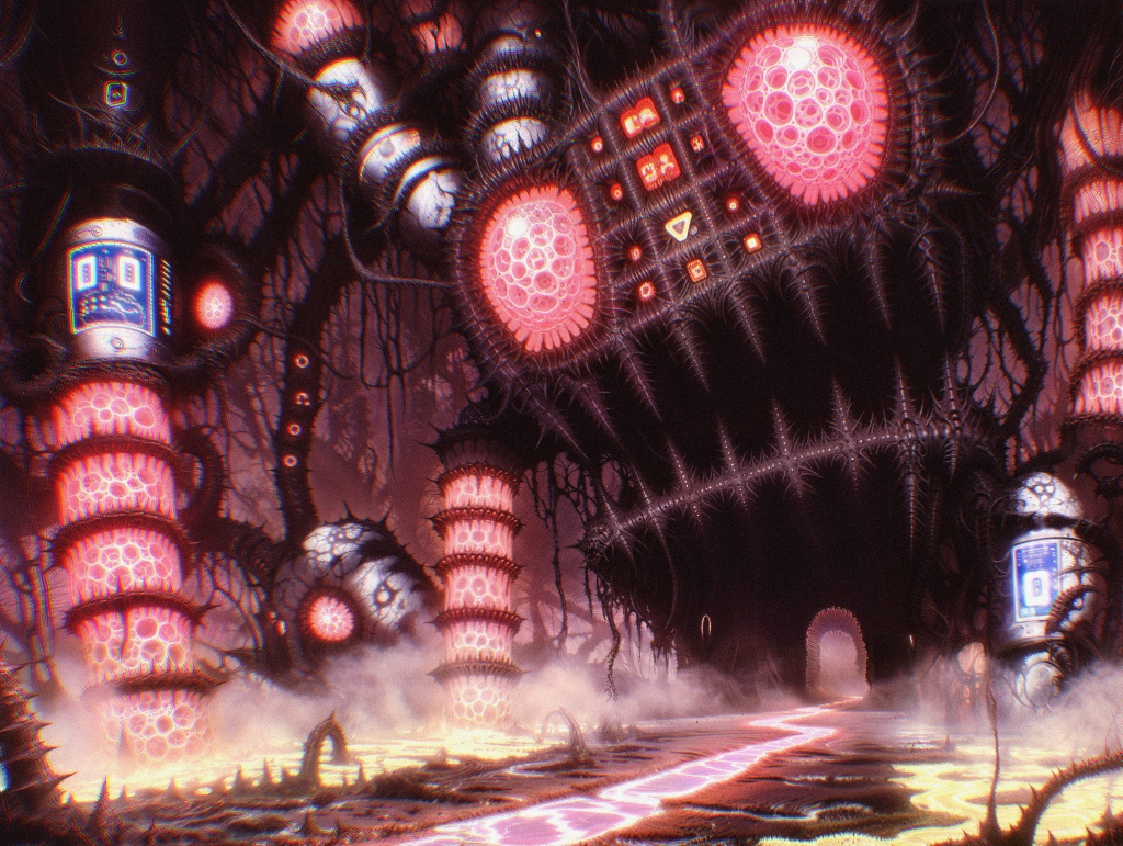 In the center of this hall was a shrine, mostly unlike the Shrine of Imagination in Xanadu. At its core was something like a doorway, a portal of infinity, like two mirrors facing. The door had a surface like liquid. Like Xanadu, it still felt like a temple of stone, metal, and ancient hyper-technology. Vaeda must have respected the designers of the place.