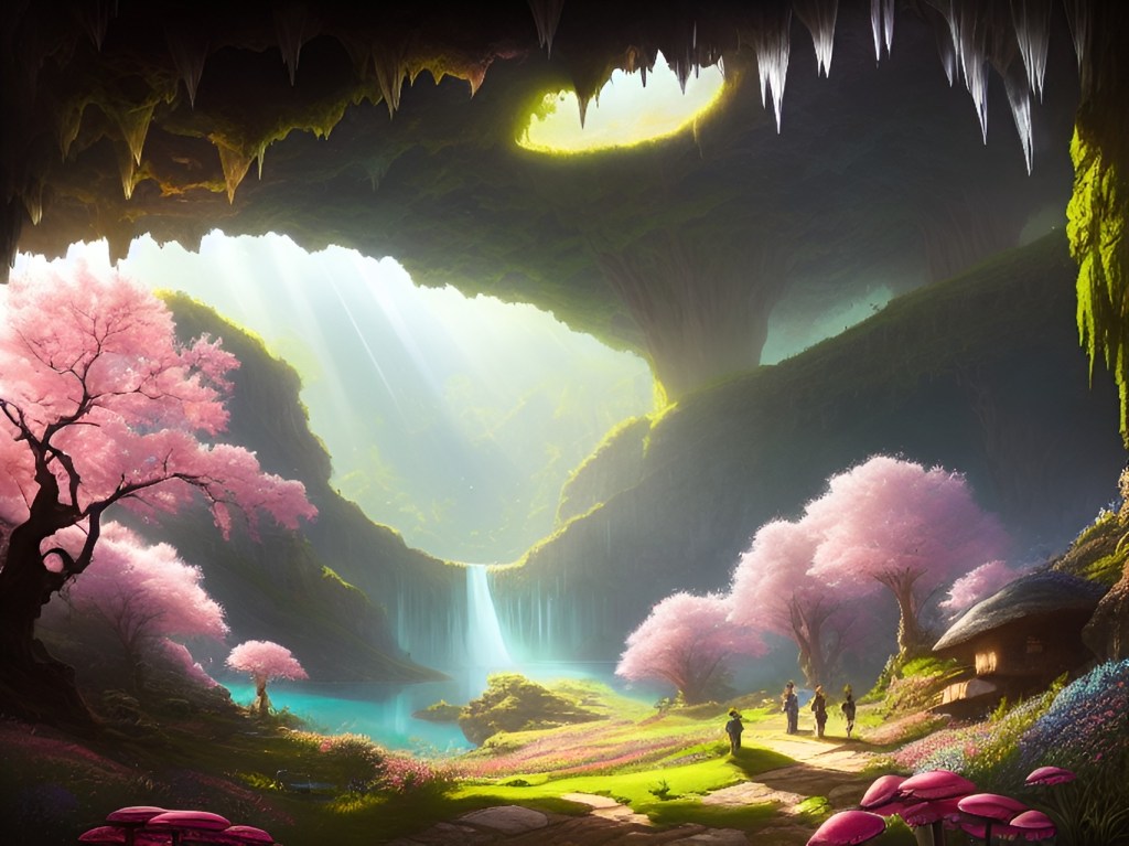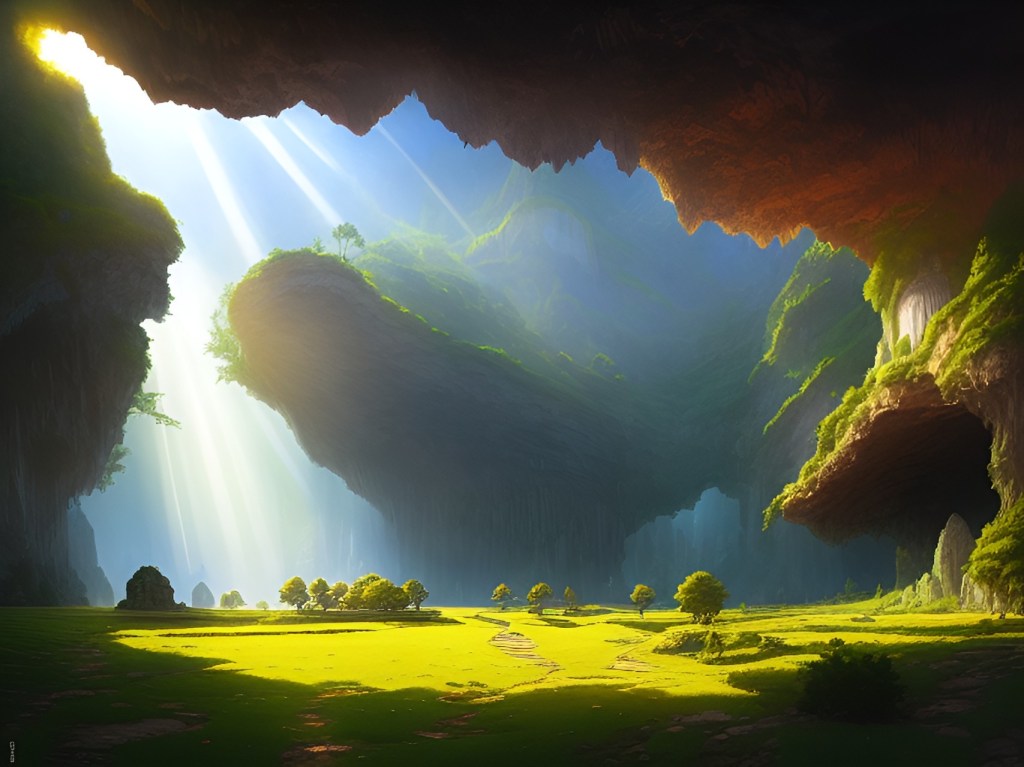 After the dust settled, it was clear that the place we landed was a marvelous spectacle. Rays of light penetrated through various tears in the earth above, feeding the sparse forest that existed underground. Hero, unfallen, looked down at us from the overworld, barking at us in sympathy. Ultimately, he walked away, probably realizing there was nothing he could do at this point.