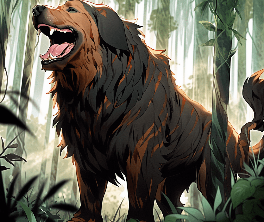 The bushes began to shake vigorously, followed by a roar. My trembling grew worse. Was Nell insane?? What did he mean by ‘hero’? A massive beast leaped from behind the bush and confronted us. This beast had a great mane, like a lion, and was generally very thick and fluffy, yet also terrifying and massive, almost double my height.