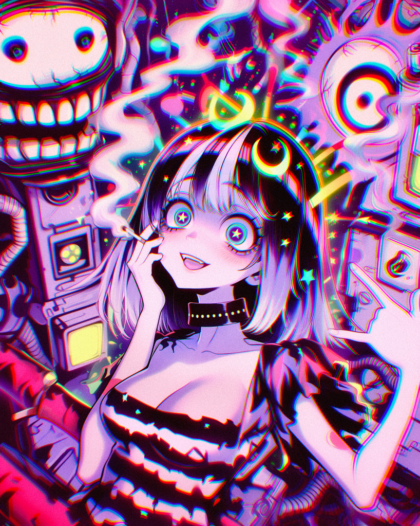 Lily exclaimed, “Your turn now!” and then gently placed her other cigarette between Pandora’s lips. She gave the same sensual guidance and intimacy that she did with me. Lily instructed, “Now, just inhale slowly… Mm, feels good, yeah?” Even watching them felt arousing. Maybe I was just imagining it.