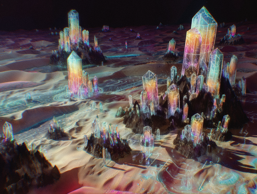 We all gathered round, looking out with him, at a sea of disaster. The entire floor below was consumed by crystals. Prismatic effects and rainbows patterned the ground. It was beautiful, but horrible.