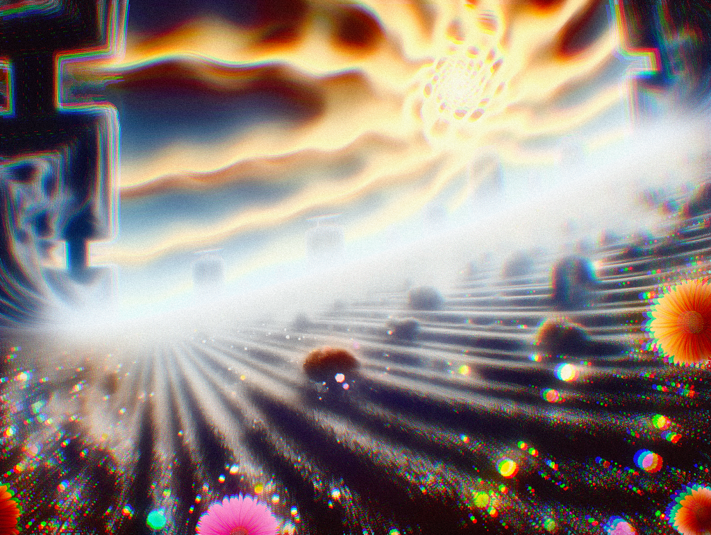 Frolicking in the meadow of eternal sunshine, like an undying dream, one where fate cannot be met, where time does not pass and the sun does not set, but alas one may pray their way away from this endless now, for their escape from dismay. May time move again, from paused to fast, from birth to death, from first to last.