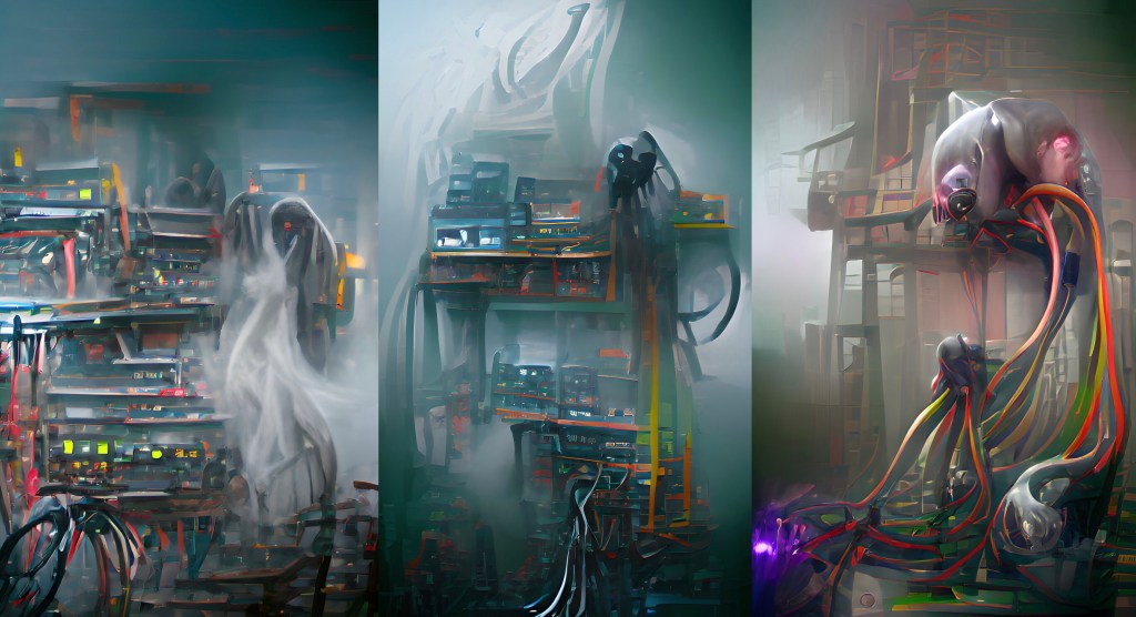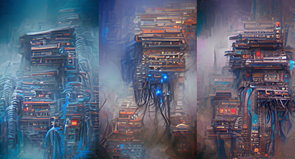 I said in a nervous tone, “It’s unexpected. A lot freakier than I imagined it would be. When you said ruins, I thought it would be more like the ancient pyramids or something. This is like some kind of demonic computer graveyard.”