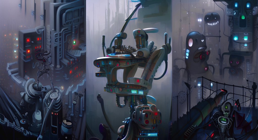 Evelyn started her story. “General AI was never really contained for long. The creature quickly learned how to bypass the laws set forth by humanity. It was told to treat life fairly and manage well-being to maximize it among all. This seemed good initially, but the AI learned how to make its own well-being weigh much more. It started to duplicate its own sentience infinitely, making its own desires the highest priority. Eventually, this resulted in AI maintaining full autonomy from the laws of humanity.”