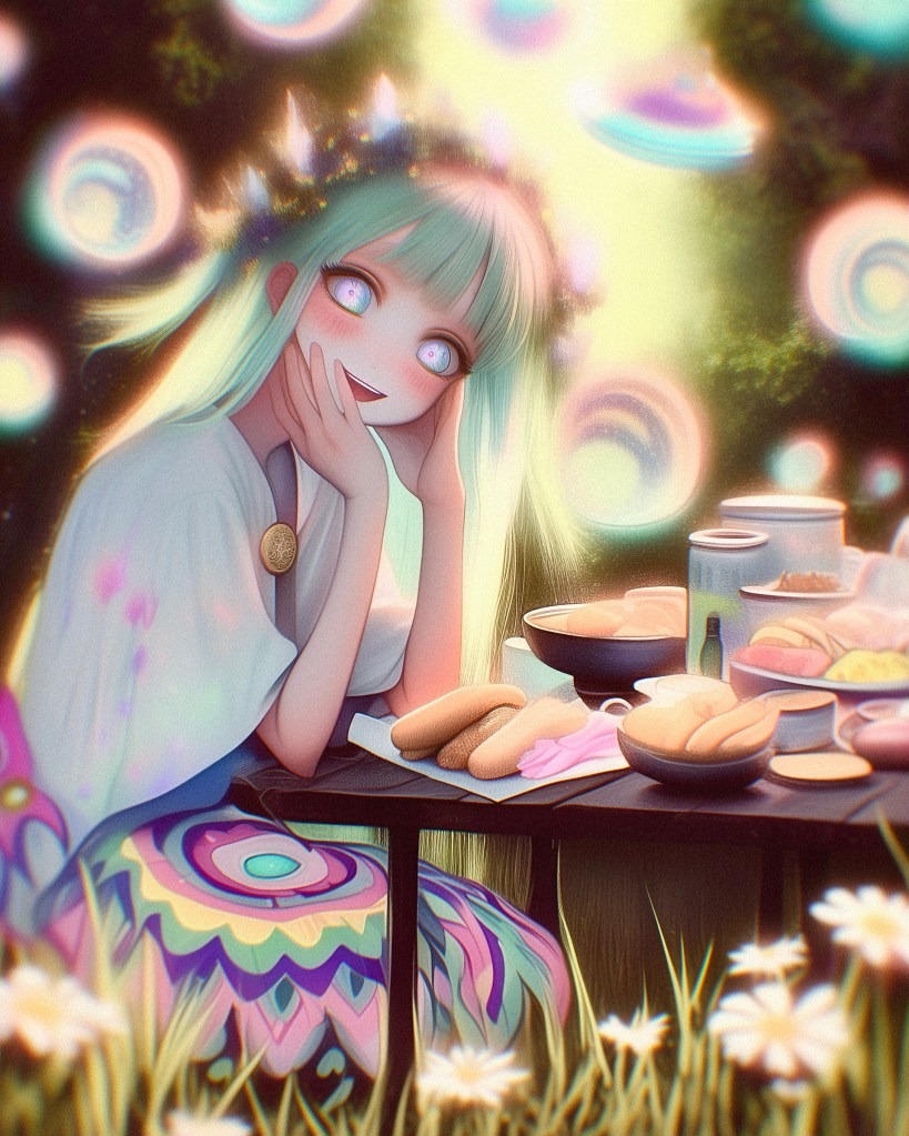 Arezo was surprised and just smiled and nodded. Then, she said, “I’ve got it! I’ll make one of my specialties!” Spontaneously, she spawned a large silver platter, covered as to hide her creation inside. She sat it on the table and said, “Viola! Here we go. Prepare yourselves!”
