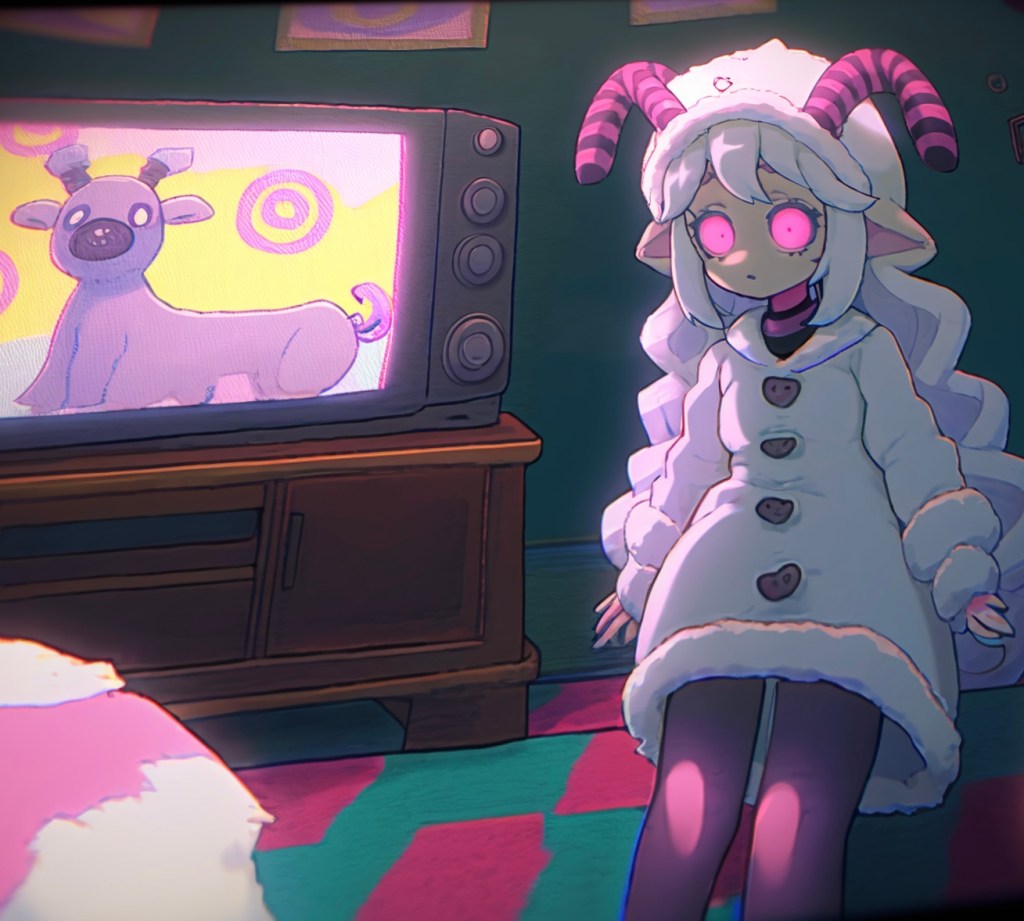 The pink-haired girl went first, “Wow your Lamby fit’s snazzy!” She kneeled down and touched my fit.