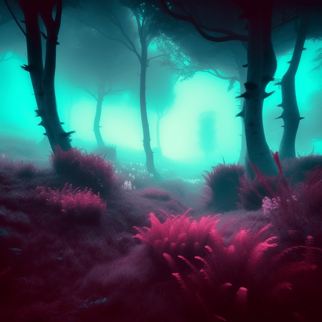 We entered Iniko. The place was chilling, especially in the night like this. For the first while, the plants were just green, with an occasional spotting of blood red. Moving deeper, the plants diversified. Some almost looked like buildings. I convinced myself this was only an illusion of the night. Pink lights glittered the distance and fog swirled around us the further we went.
