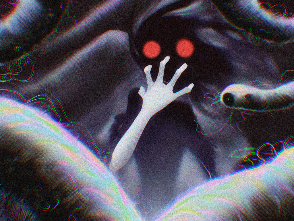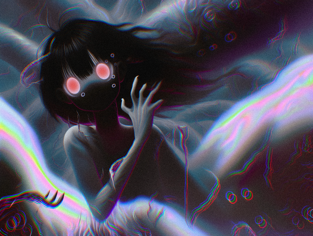 My own voice returned, but distorted, deeper, higher, a whole cacophony of phonies spoke my words back at me. The faintest glimpse of colorful motion spazzed around as if to illuminate those voices.
