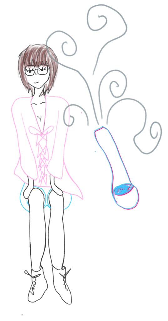 580 handed the bong to Nell. She took a small hit and then passed it to Taro. She coughed and said, “Wow it’s more intense than I remember.”