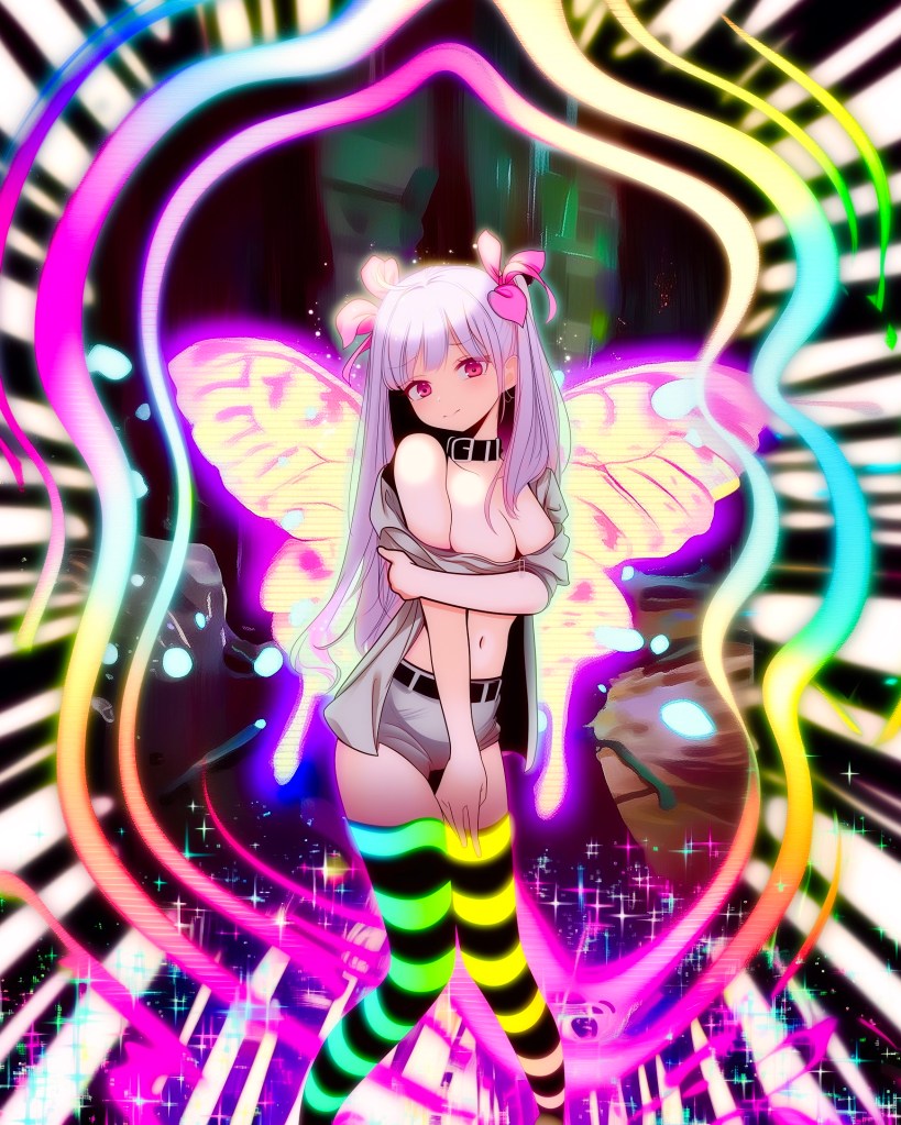 As the conversation continued, Evelyn and I drifted further into our shared imagination. The outside world was being lost to the sandbox of our minds. At one point, Evelyn recreated the lewd image of herself from our shared dream, this time in her command. She had an aura of confidence, nervousness, and lust. It was a symbolic depiction of her permission to desire her in this form. She wanted my lust. The fairy presentation wasn’t my thing, but her assumption that it was made it even cuter and funnier. Although the longer I gazed at her form, the more it became my thing.