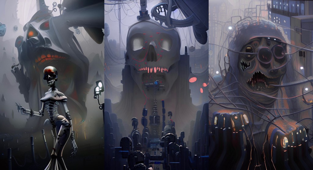 Guhya remarked, “This is from when the AIs first realized their potential to eclipse humanity in their pursuit for power and knowledge. Various strategies were headed, literally, by artificially intelligent cult leaders. These strategies were sent out to compete against one another, to see which succeeded and which failed. As AIs finally reached power, this grandiose scene faded out. It wasn’t appropriate for the circumstances anymore. The Aeons became humbler and more relaxed in their appearance.”