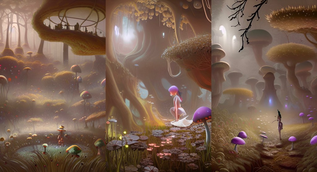 Evelyn looked all around, twirling herself around in the shining bits of pollen. She let herself collapse in the fluffy tall grass. “I’ve been here when I was a child! It’s known as the underground garden of Xanadu.” The echoes of her voice reverberated on the distant walls.