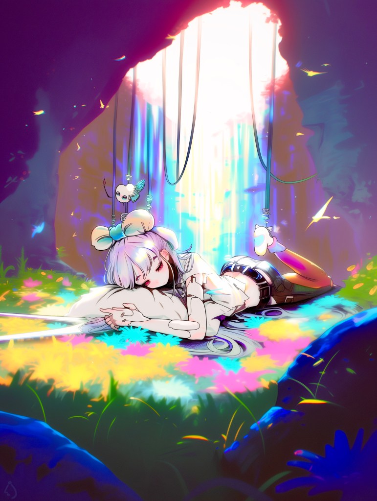Taro brought out pillows, handing one to each of us. We laid there in the middle of this strange flowery meadow and quickly drifted into slumber.